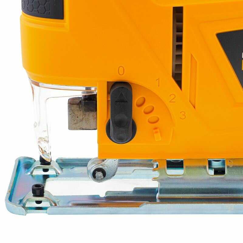 | Особенности конструкции : | антивибрационная система, возможность подключения пылесоса, защитный щиток, обрезиненная рукоятка, регулировка наклона подошвы без инструмента, сдув опилок |