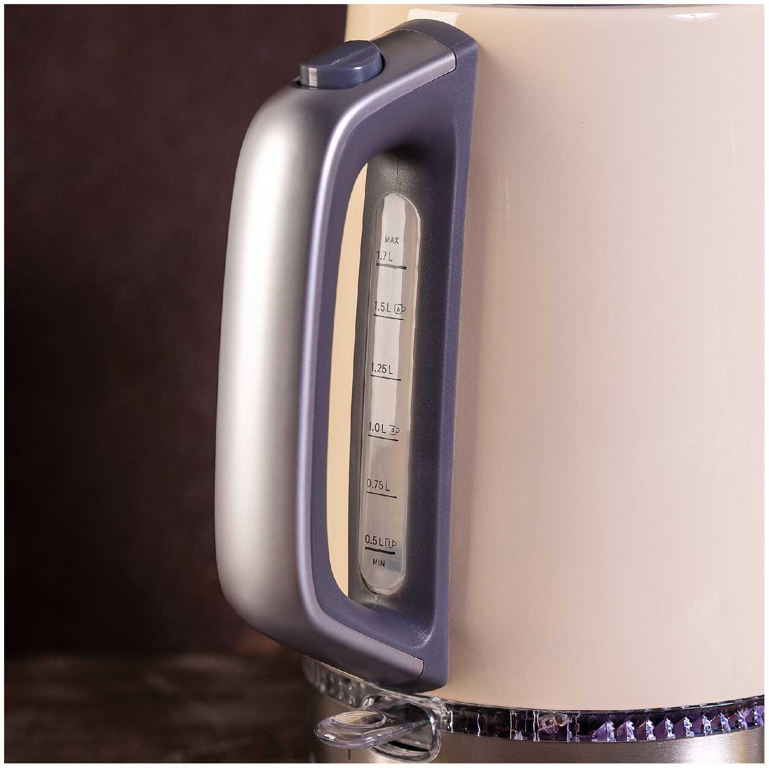 - Шнур длиной 75 см позволяет удобно разместить чайник на кухне.