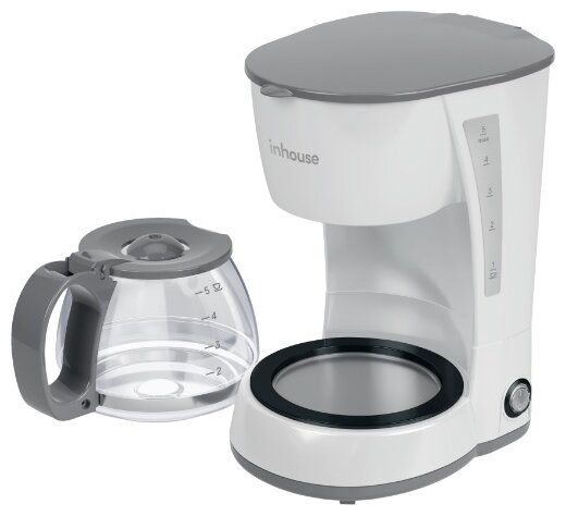 Вообще, кофеварка Inhouse ICMD0603GW достаточно удобна и проста в использовании. Удобный в использовании, устойчивый фильтр для кофе. При приготовлении кофе крышка плотно закрывается и даже защелкивается. - - Небольшой минус - снаружи почти не просматривается уровень налитой воды по делениям, показывающим количество чашек кофе.
