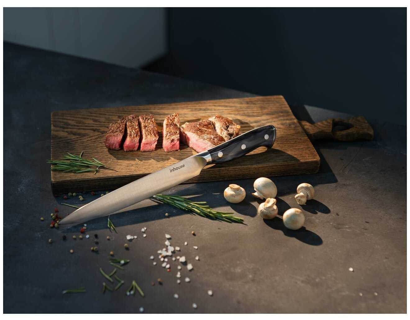 Нож Inhouse IHOCRSLG20 — просто отличный кухонный нож! Нарезка овощей и мяса с ним — одно удовольствие. Ручка удобная, заточка хорошая