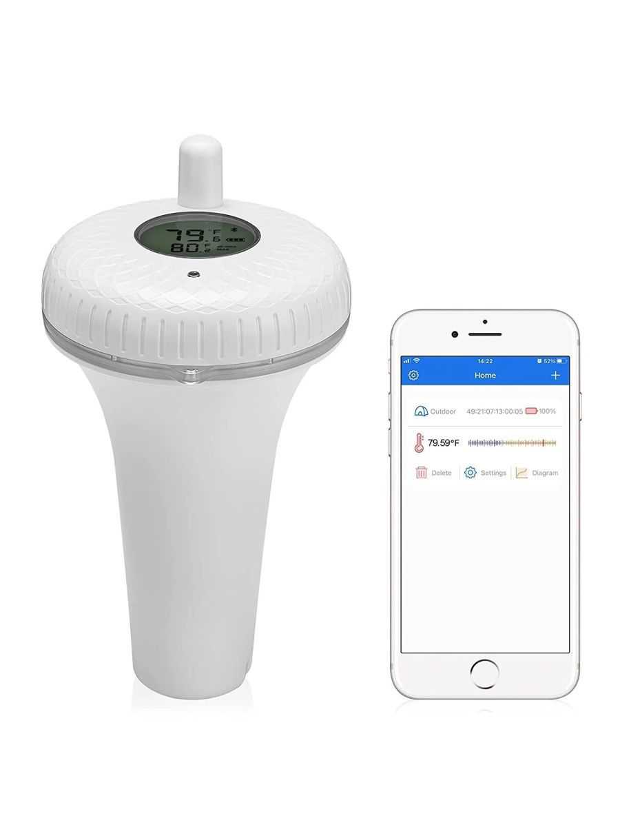 Удобно что плавает на поверхности и можно смотреть температуру без приложения. Формфактор такой что термометр не затягивается в скимер что тоже удобно