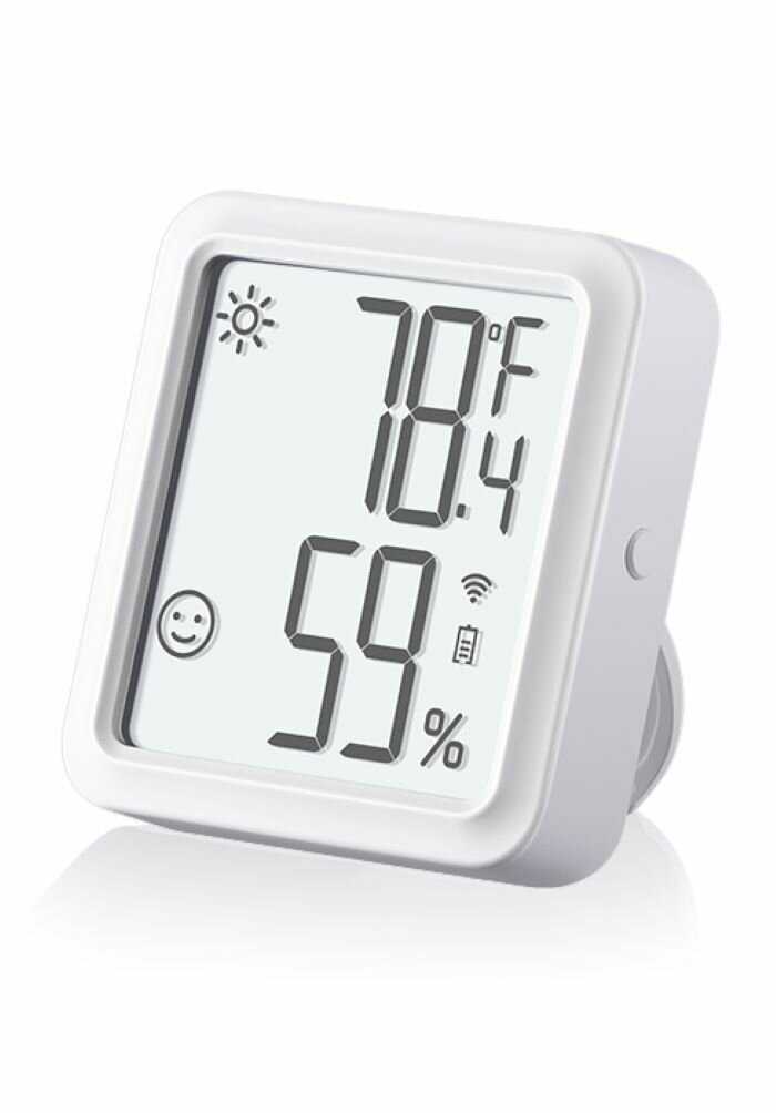 - + показывает температуру и влажность, ведёт лог, который можно получить и посмотреть в приложении, компактный, питается от элемента 2032
