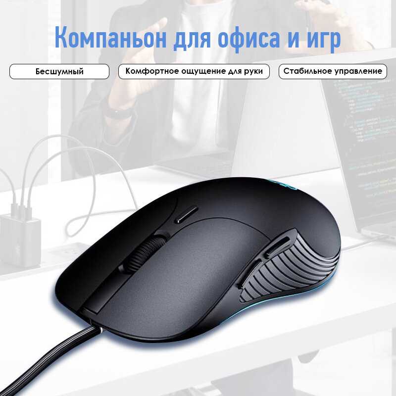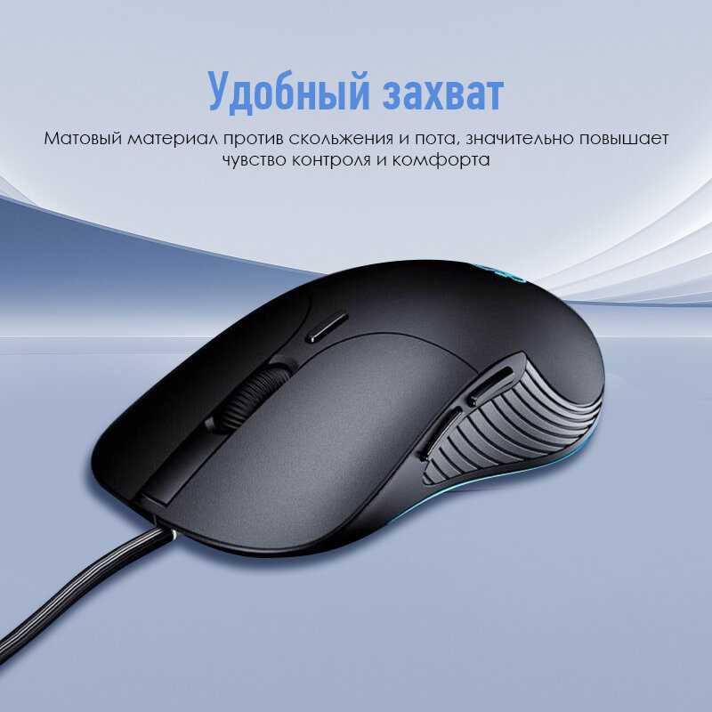 Мышь имеет ненавязчивую RGB-подсветку с плавным переходом цветов. Однако пользователи отмечают, что нельзя выбрать статичный цвет или отключить подсветку полностью — это может быть минусом для тех, кто предпочитает минимализм.