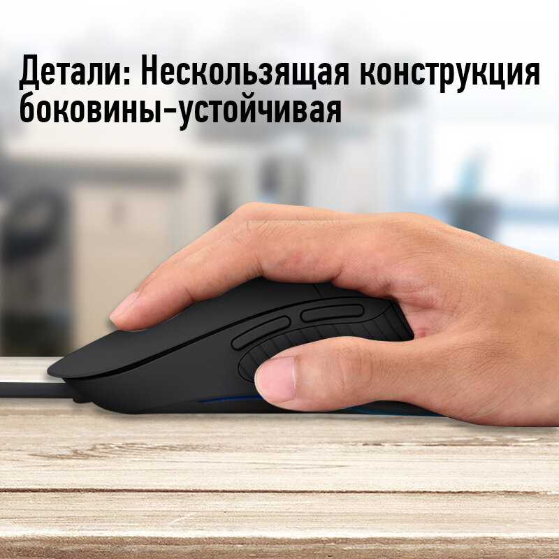 Эргономика мыши вызывает неоднозначные оценки. Для рук среднего размера форма оказалась удобной: обтекаемый корпус с резиновым покрытием обеспечивает плотный хват. Однако пользователи с крупными ладонями жалуются на низкий профиль — мышка кажется плоской, приходится привыкать. Боковые кнопки расположены так, что их легко задеть случайным нажатием, особенно при активном использовании. Вес устройства оценивают как лёгкий, что удобно для офисных задач, но непривычно для игр. Провод, по мнению многих, достаточно прочный, но его жёсткость иногда ограничивает движения. Отдельно отмечают, что сенсор корректно работает на разных поверхностях, включая ковры, без рывков или задержек.