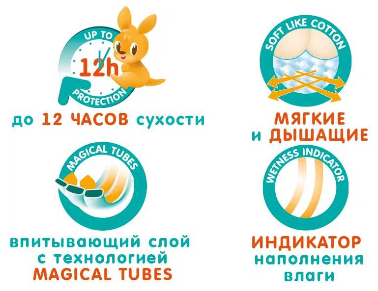 - + Хорошие подгузники. Используем в основном на ночь. Производитель заявляет до 12 часов сухости. Пока так и...