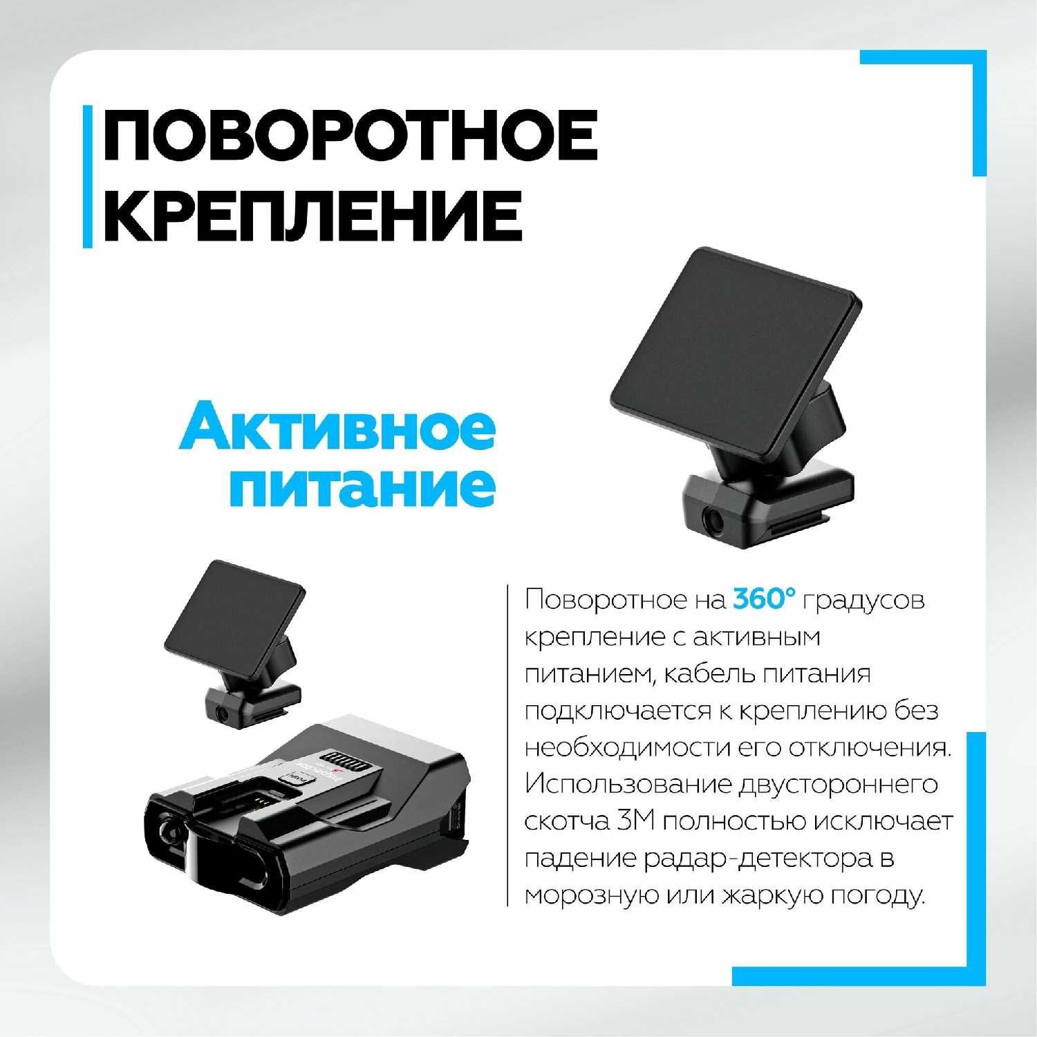 Удобство управления и настройки: Меню интуитивно понятно большинству пользователей, но 10% отмечают сложность навигации. Крепление на 3М-скотче обеспечивает надежную фиксацию, а магнитное соединение с питанием упрощает съем детектора. Однако отсутствие альтернативных креплений (например, на присосках) ограничивает гибкость размещения — совместимость есть только с шаровыми адаптерами Silverstone F1. Экран с регулируемой подсветкой информативен, но не виден через поляризационные очки — проблему решает поворот устройства на 45°. Звуковые настройки требуют доработки: 5 уровней громкости недостаточно, переход между ними резкий.