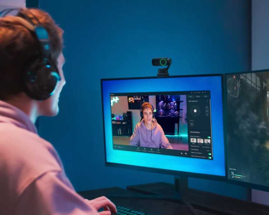 - Трекинг с тремя пресетами (крупный план, общий ракурс) адаптируется к движениям, поддерживая фокус на расстоянии до 3 метров, что повышает удобство для стримеров в динамичных сценариях.