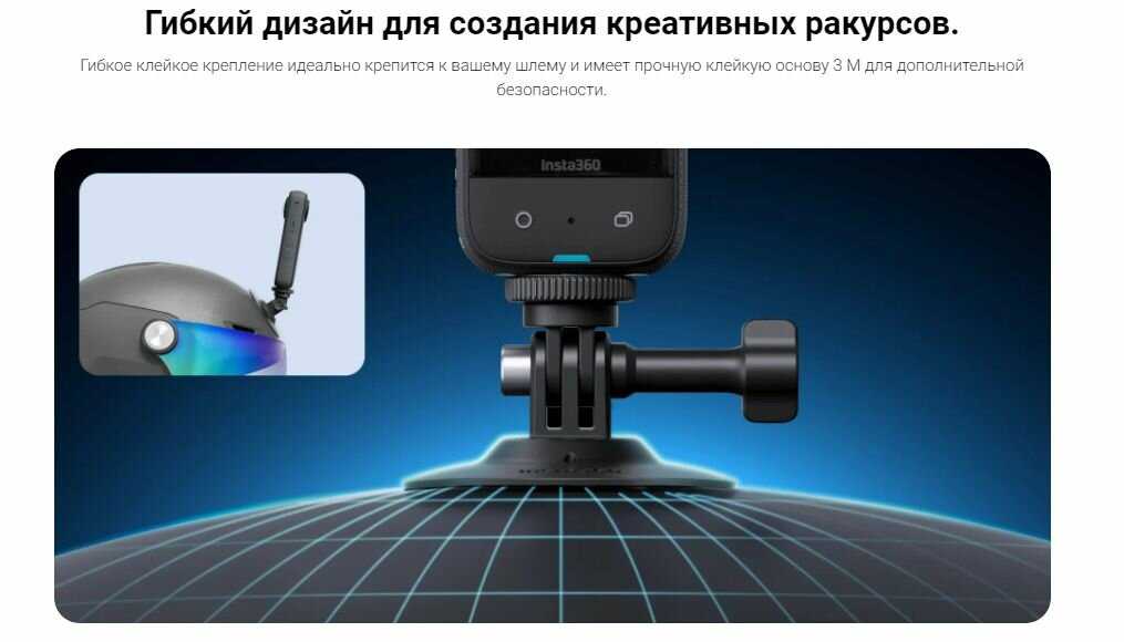 - + Большой выбор креплений под камеру insta360 и GoPro