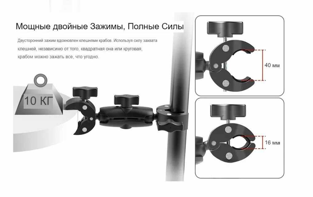 | Комплектация : | Крепления зажим 18см + головка 1/4 для монопода / GoPro / Insta360 |