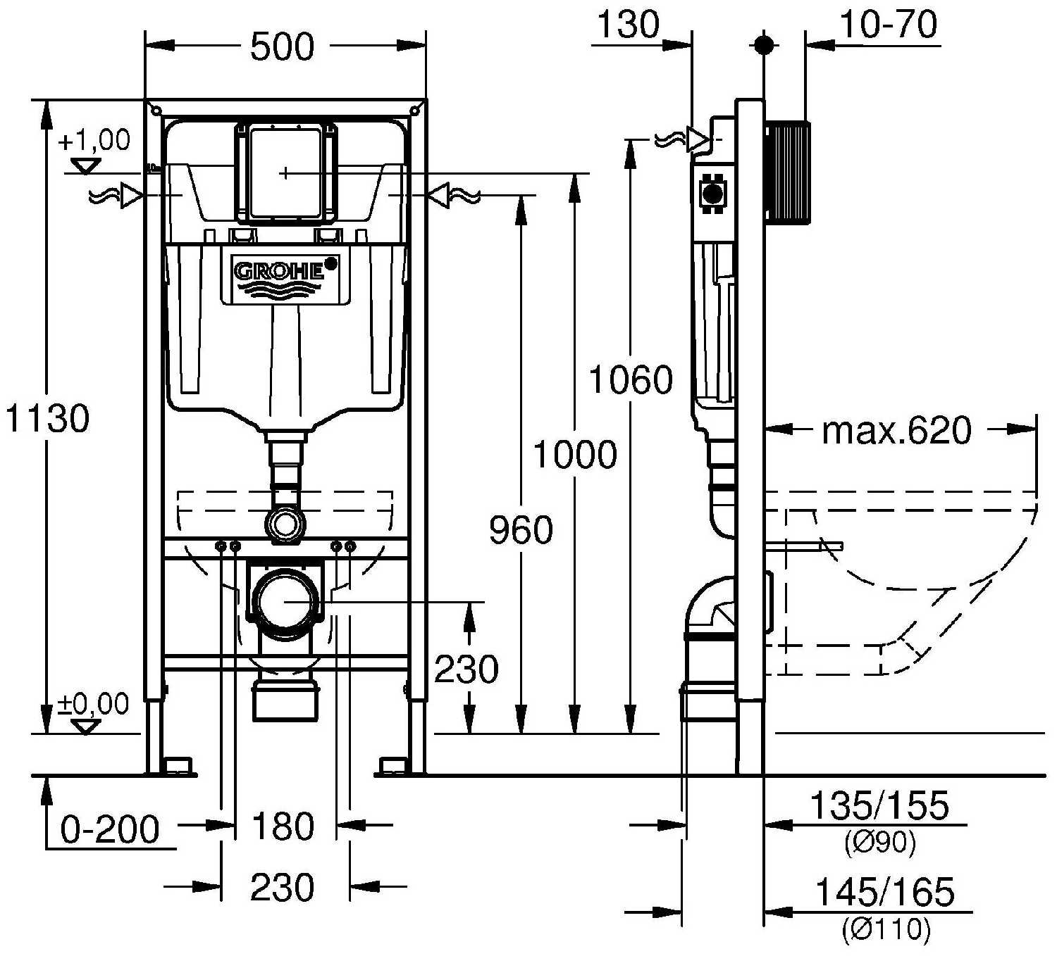 - монтажная высота 113 см