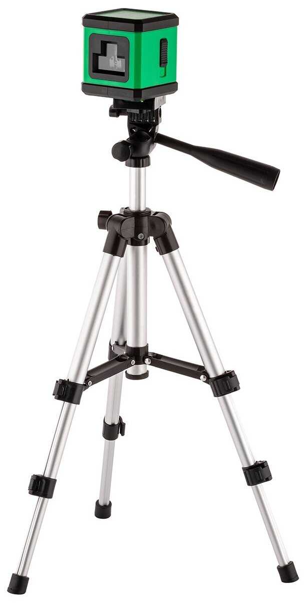 - + Малые размеры, зеленый луч лазера, минимум настроек, штатив в комплекте. На площадке штатива есть простой уровень. При неправильной установке лучи начинают мигать.