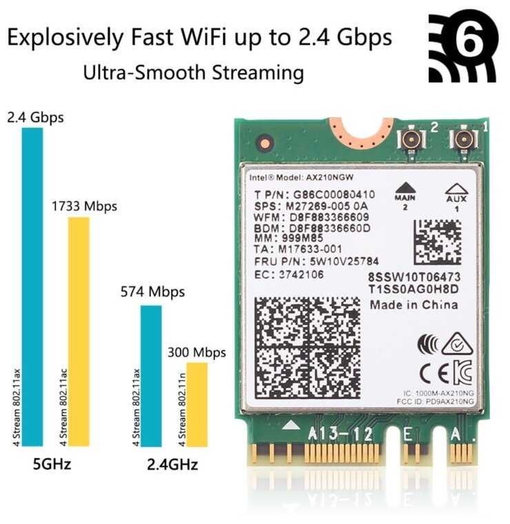 Адаптер AX210 вполне подходит для этого ноутбука и работает в режиме Wifi6 (ax)