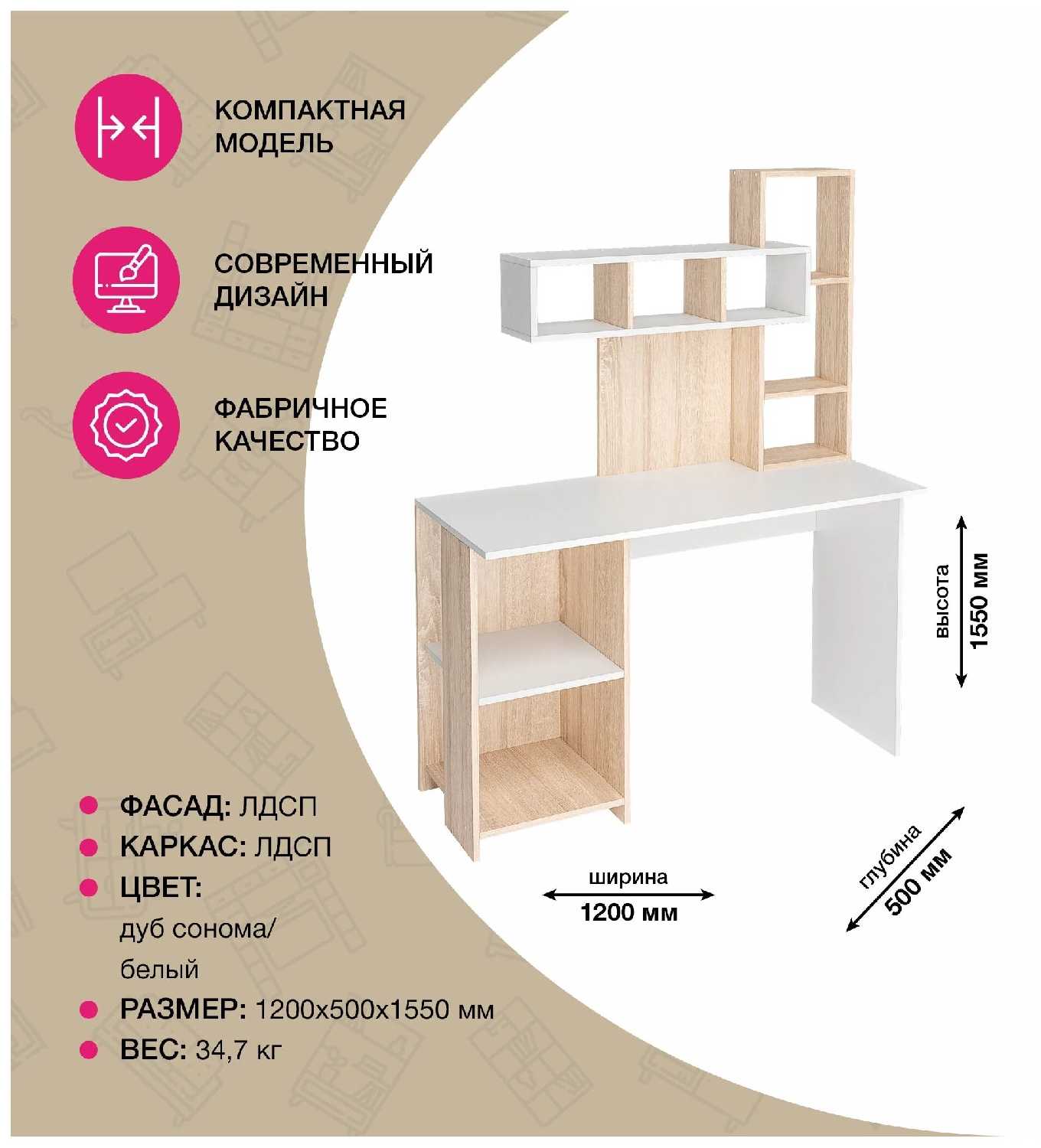 - Много полок и ящиков для хранения учебных принадлежностей, ноутбука или рабочих вещей.
