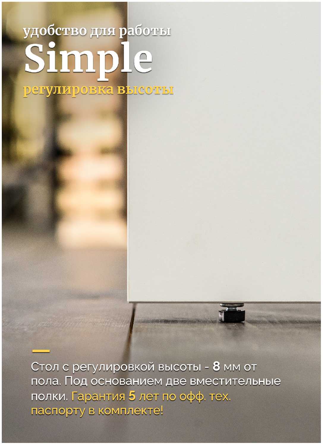 Регулируемая высота - - Нет маленькой подставки под сам компьютер