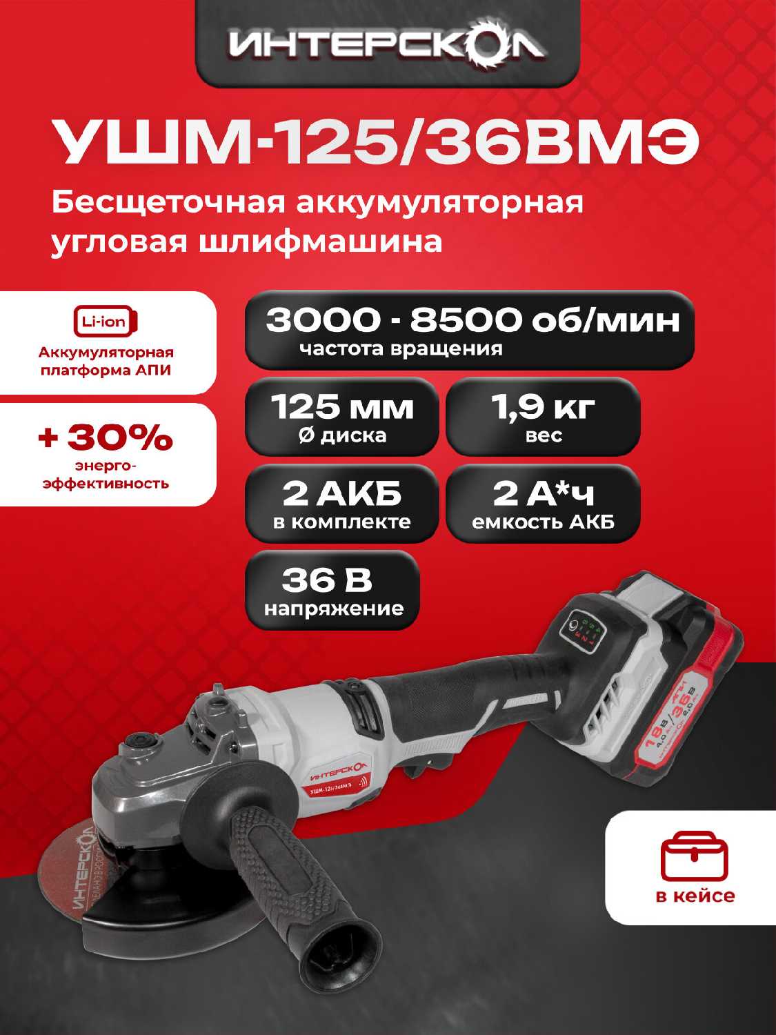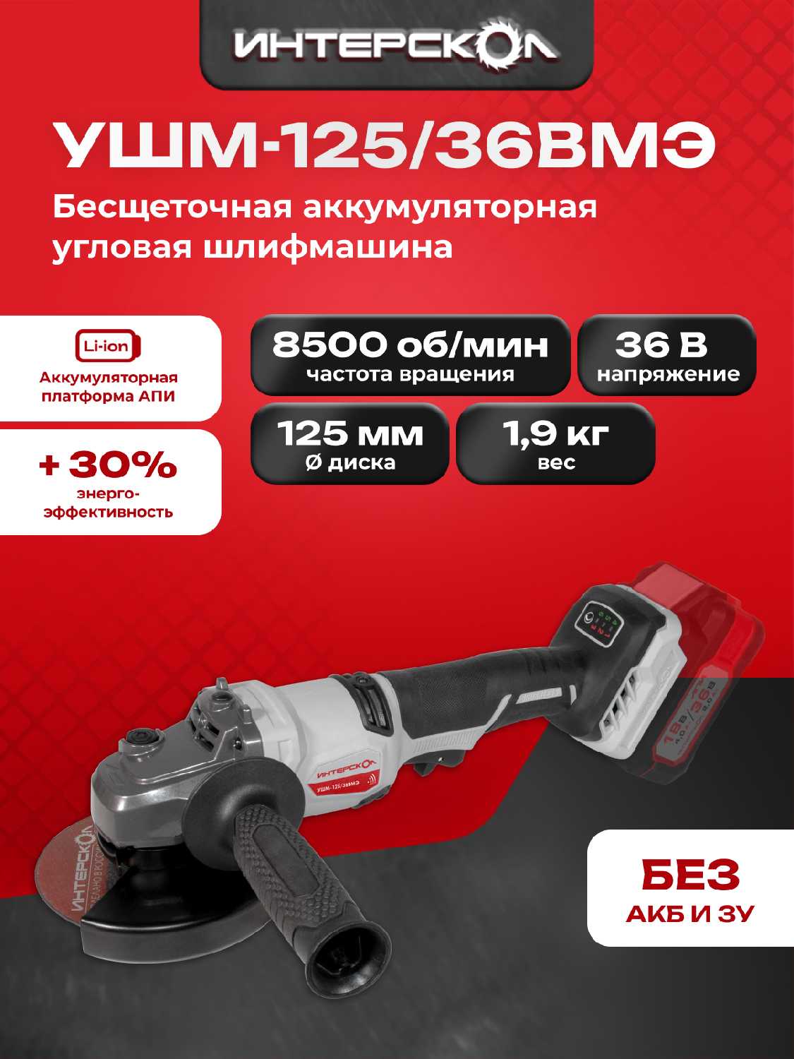 Интерскол Бесщеточная аккумуляторная [125 мм]?