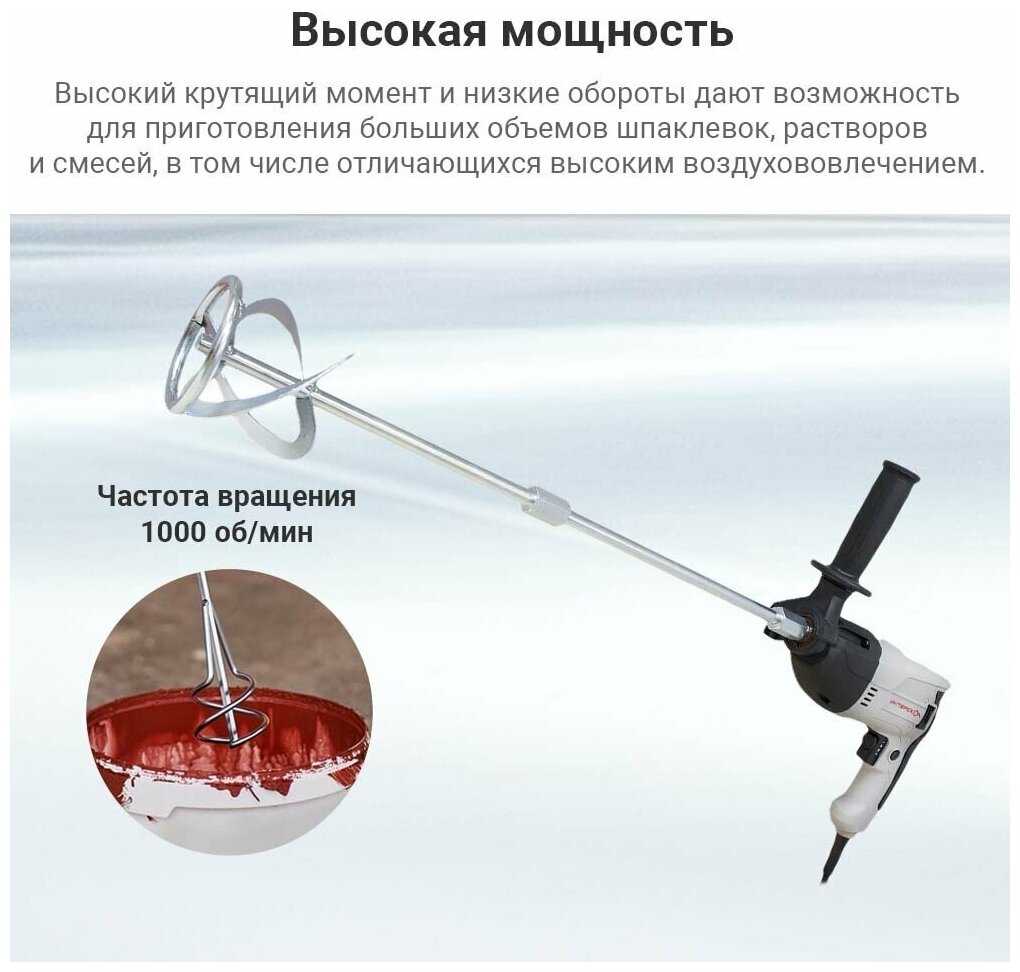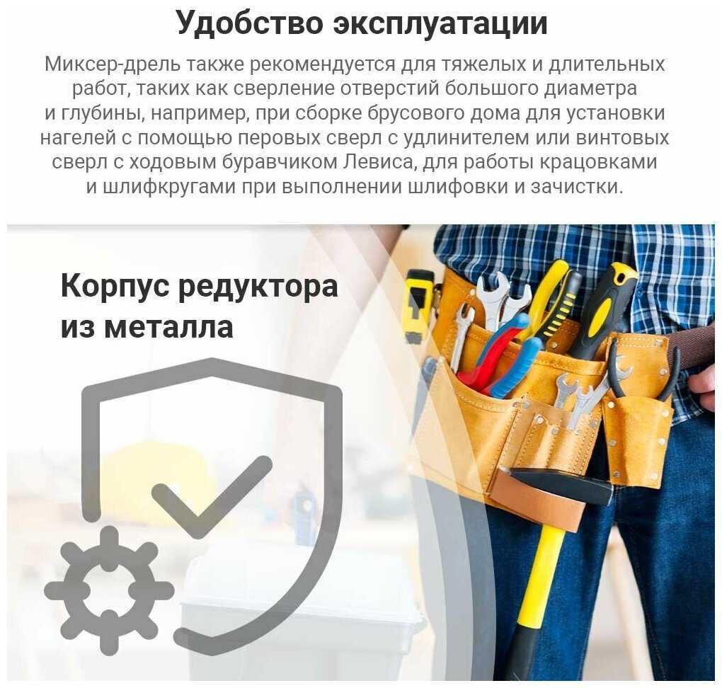 При необходимости можно совмещать - работу миксером и дрелью. Не дорогая стоимость, достаточная мощность. Добротный шнек. Использую для замеса строительных смесей.