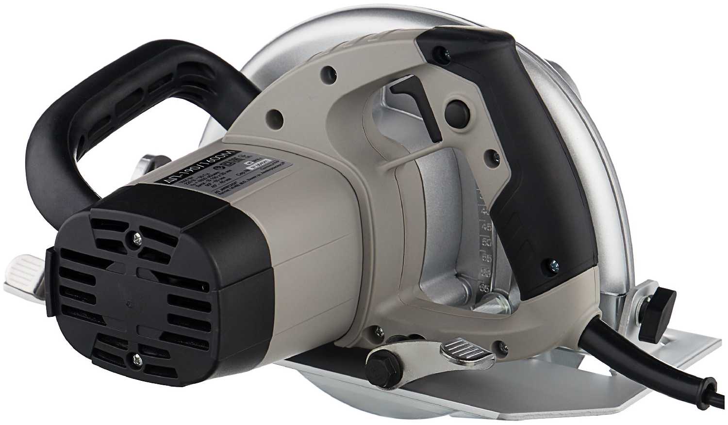 Мощности двигателя хватает для большинства бытовых задач: распиловки досок до 50 мм, бруса, ДСП и даже мягкого металлического профиля. Однако при глубоком продольном пилении твердой древесины (например, дуба или лиственницы), особенно на полной глубине 65 мм, возможны ощутимая просадка оборотов, перегрев и риск заклинивания диска. Для таких задач рекомендуется работать с перерывами. -