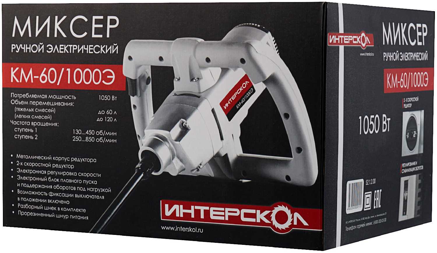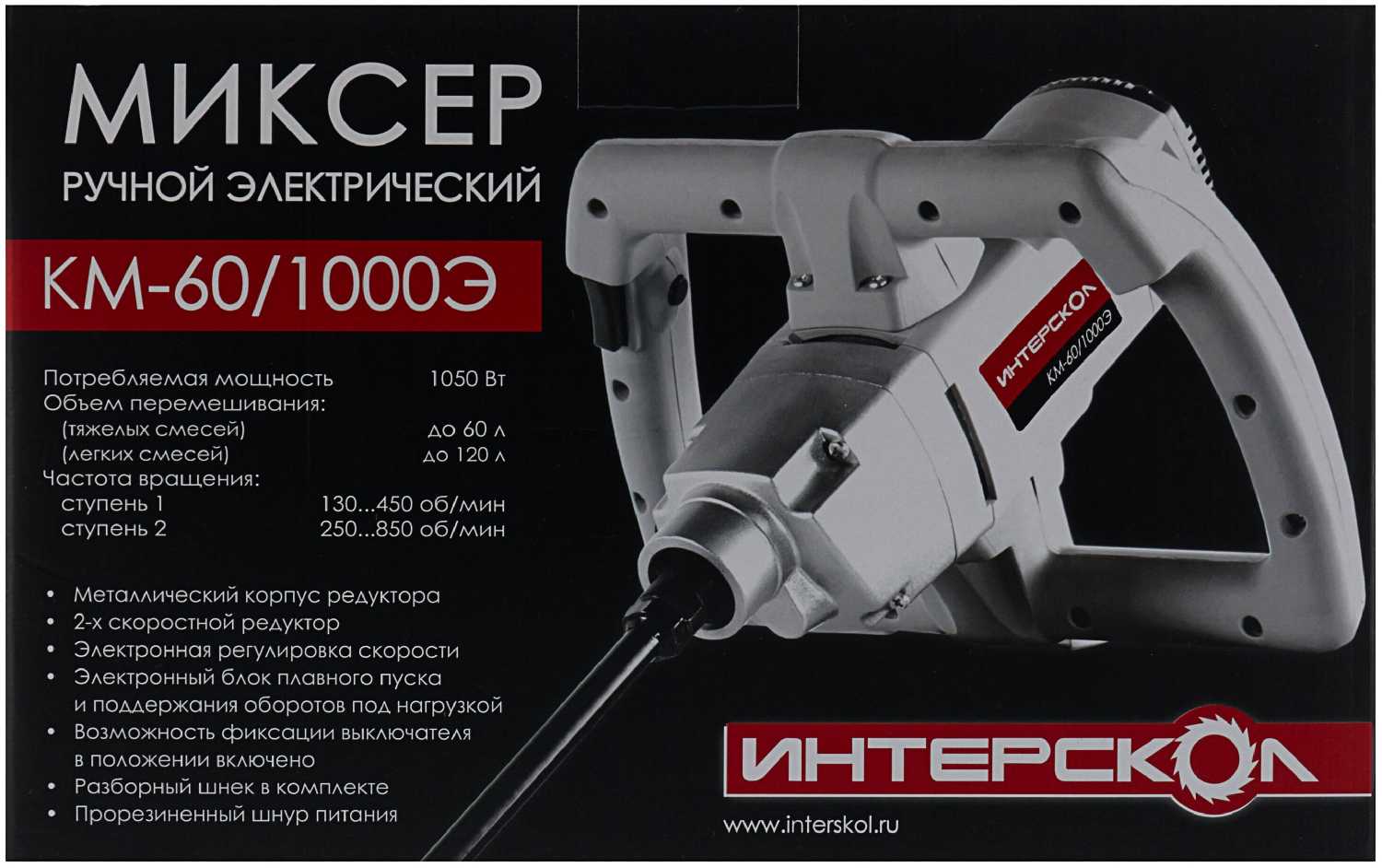 - + Смеситель ручной электрический Интерскол КМ-60/1000Э шикарный агрегат, который просто не заменим при проведении ремонта, в котором необходимо размешать наливной пол, приготовить цемент, развести плиточный клей, замесить штукатурку. Фирма Интерскол хорошая.Незаменимый помошкик на стройке.