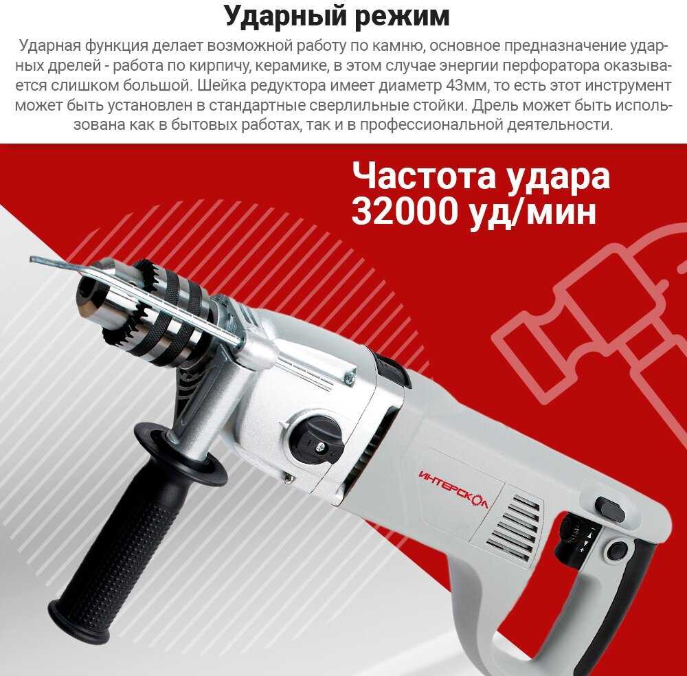 Плюсы по отзывам пользователей - Почему стоит купить Интерскол Дрель ударная ДУ-22/1200ЭРП2?: