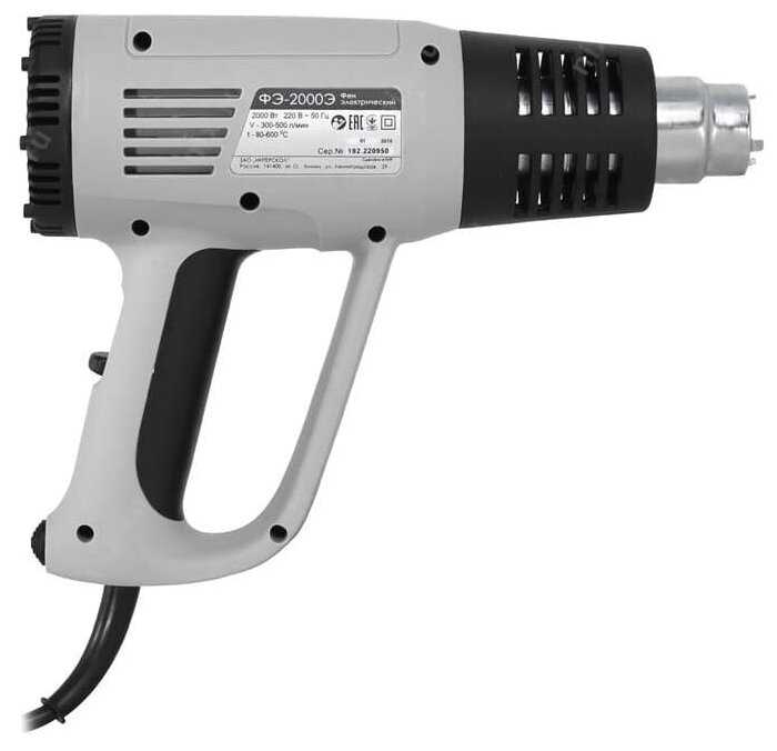 - + Отличный фен. Перед покупкой фена пересмотрел кучу отзывов и сравнительных тестов. Вообще то перебрал не один десяток фенов, перечитал все характеристики и остановил свой выбор на модели Интерскол ФЭ-2000ЭМ. Очень классная модель: температура регулируется от 50 до 600 градусов с шагом 10 градусов нажатием кнопки, переключается подача потока воздуха от 300 литров в минуту до 600 литров в минуту. Температура отображается на электронном табло. Сам фен лёгкий (всего 700 грамм), очень удобный в эксплуатации. К тому же он имеет четыре насадки для любых видов работ. После выключения фен делает продувку холодным воздухом для охлаждения нагревательного элемента. Нагревательный элемент изготовлен из керамики.