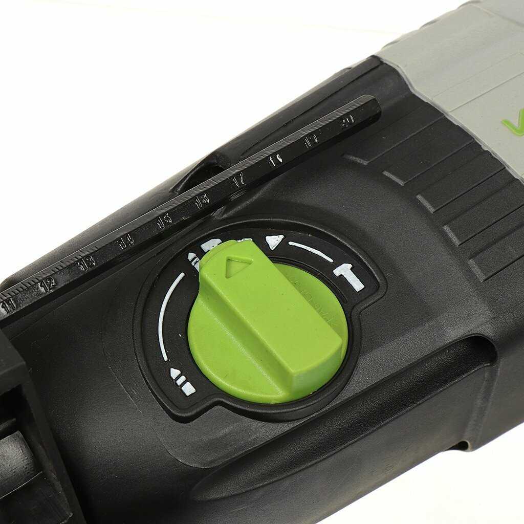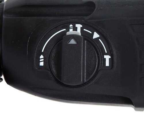 Устройство имеет три режима: сверление, сверление с ударом и долбление. Первый режим подходит для замешивания смесей венчиком и работы с деревом. Сверление с ударом используется для бетона и кирпича, а долбление — для чистовой доводки после отбойного молотка или удаления старой штукатурки. -