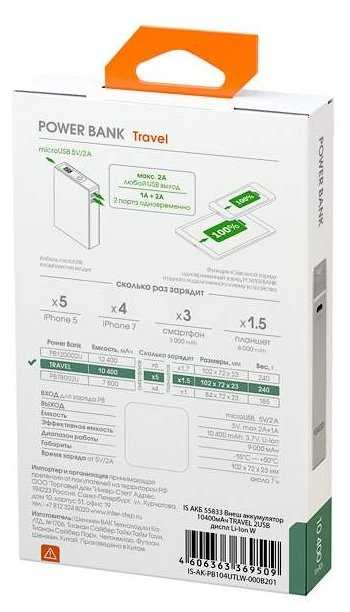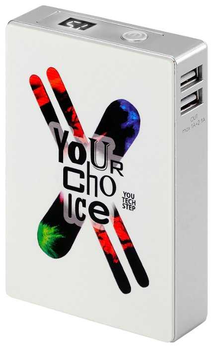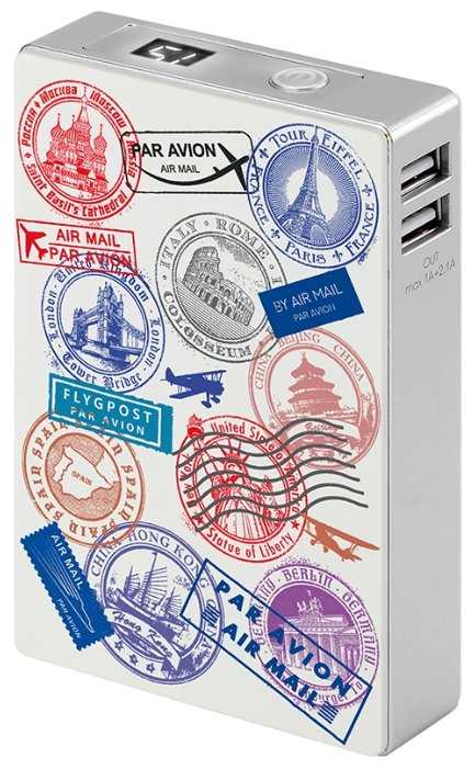 - + Компактный, цифровая индикация ёмкости устройства, 2 USB, выходная мощность 2.1А или 1А+1А, если заряжать сразу два устройства.