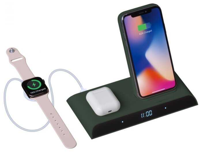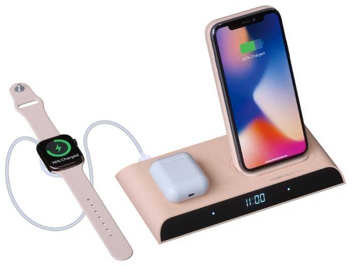 - + Красиво выглядит, показывает часы, заряжает + наушники и часы (часы тупо провод свой подключил)