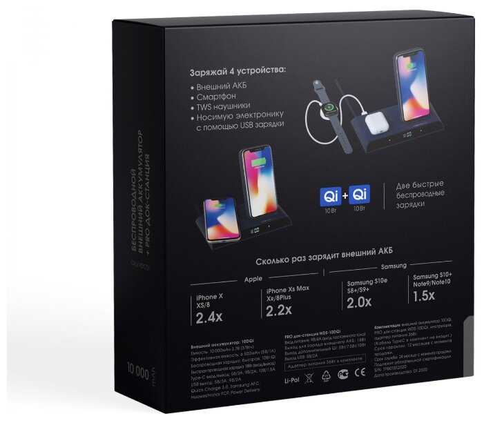 - + Отличная зарядная станция с удобным форм-фактором внешнего аккумулятора