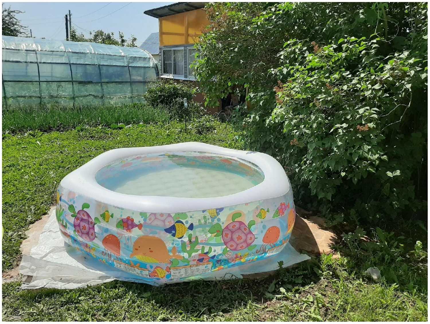 - + огромный плюс- надувное днище, можно чаще менять воду и не требуется химия.
