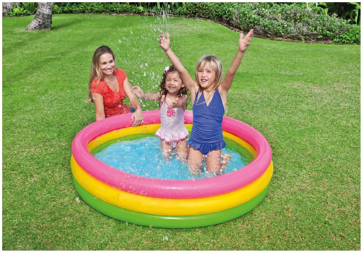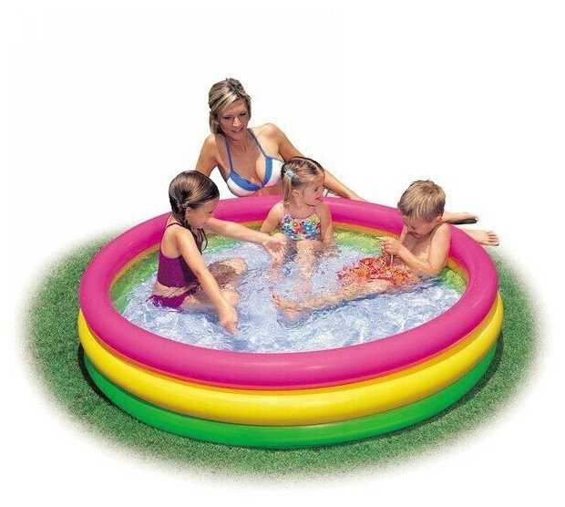 - + Нам бассейн нравится. Большой — вмещает и ребёнка, и взрослого одновременно. Надували насосом для байдарки, каждая секция надувается отдельно.