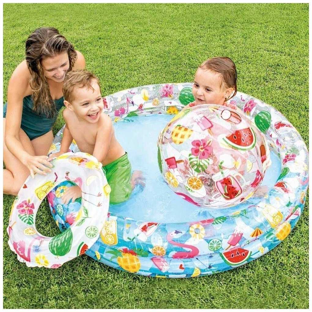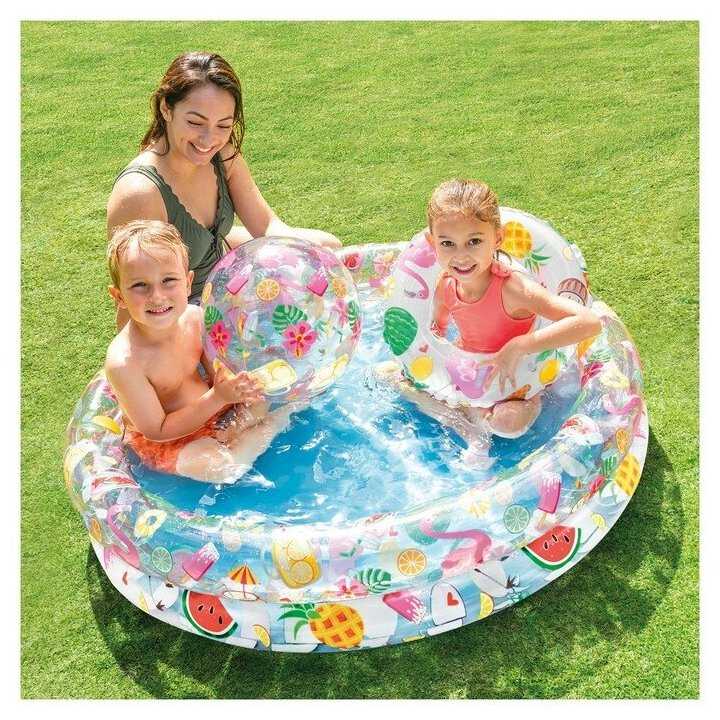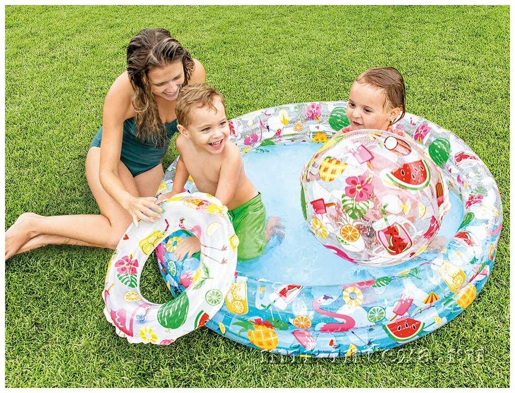 - + Неглубокий, широкий, отличная цена, круг и мяч бонусом!