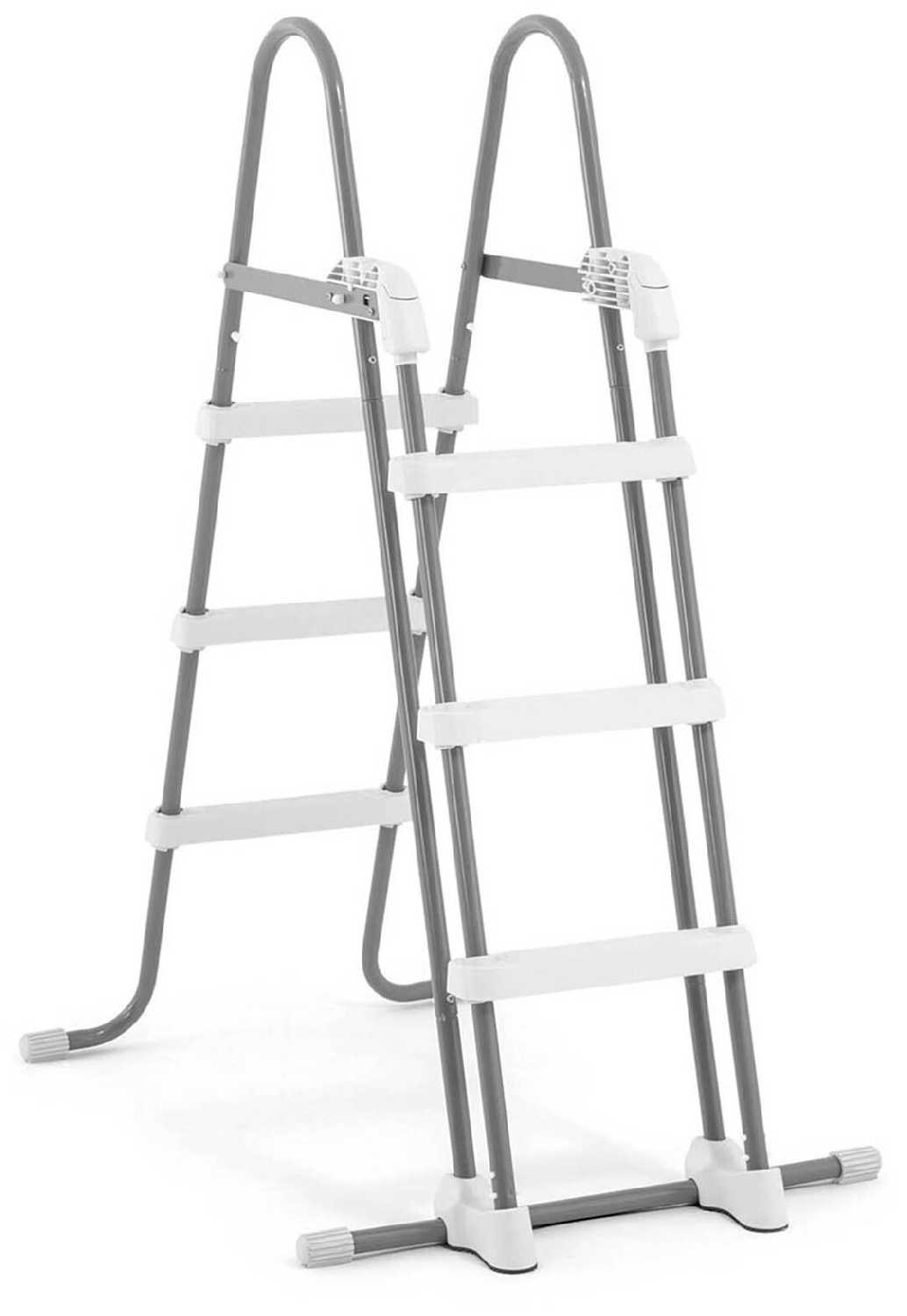 - - В комплекте нет тента и подложки под бассейн. Пришлось приобретать их отдельно. Действительно, на лестнице нет вверху площадки, у меня сыну 3 года, он научился хорошо перелезать, сначала боялся. Но если посмотрим инструкцию к бассейну, то он рекомендован детям старше 6 лет. Поэтому, никаких претензий.