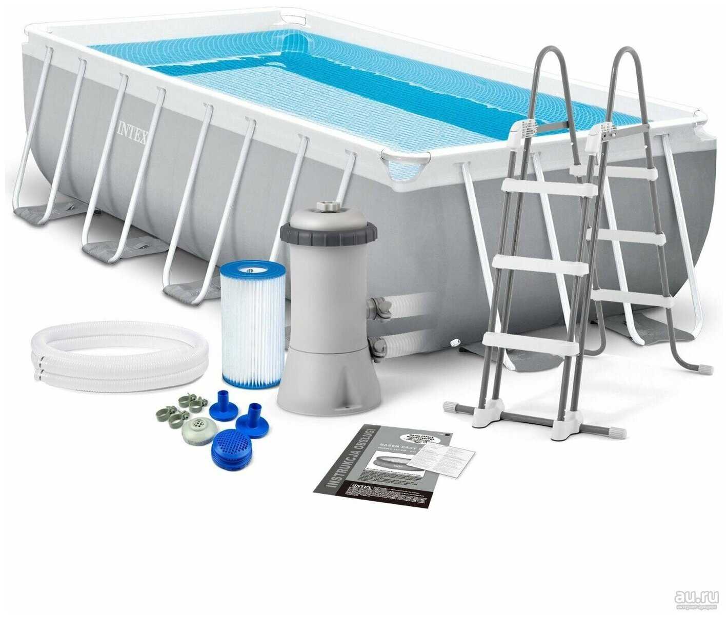 - + Собирается легко сам каркас бассейна, качество хорошее, фильтр также не сложно, все легко соединяется, с лестницей повозился немного