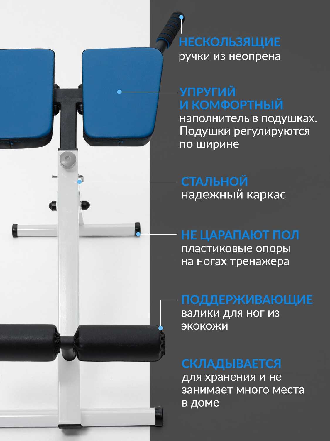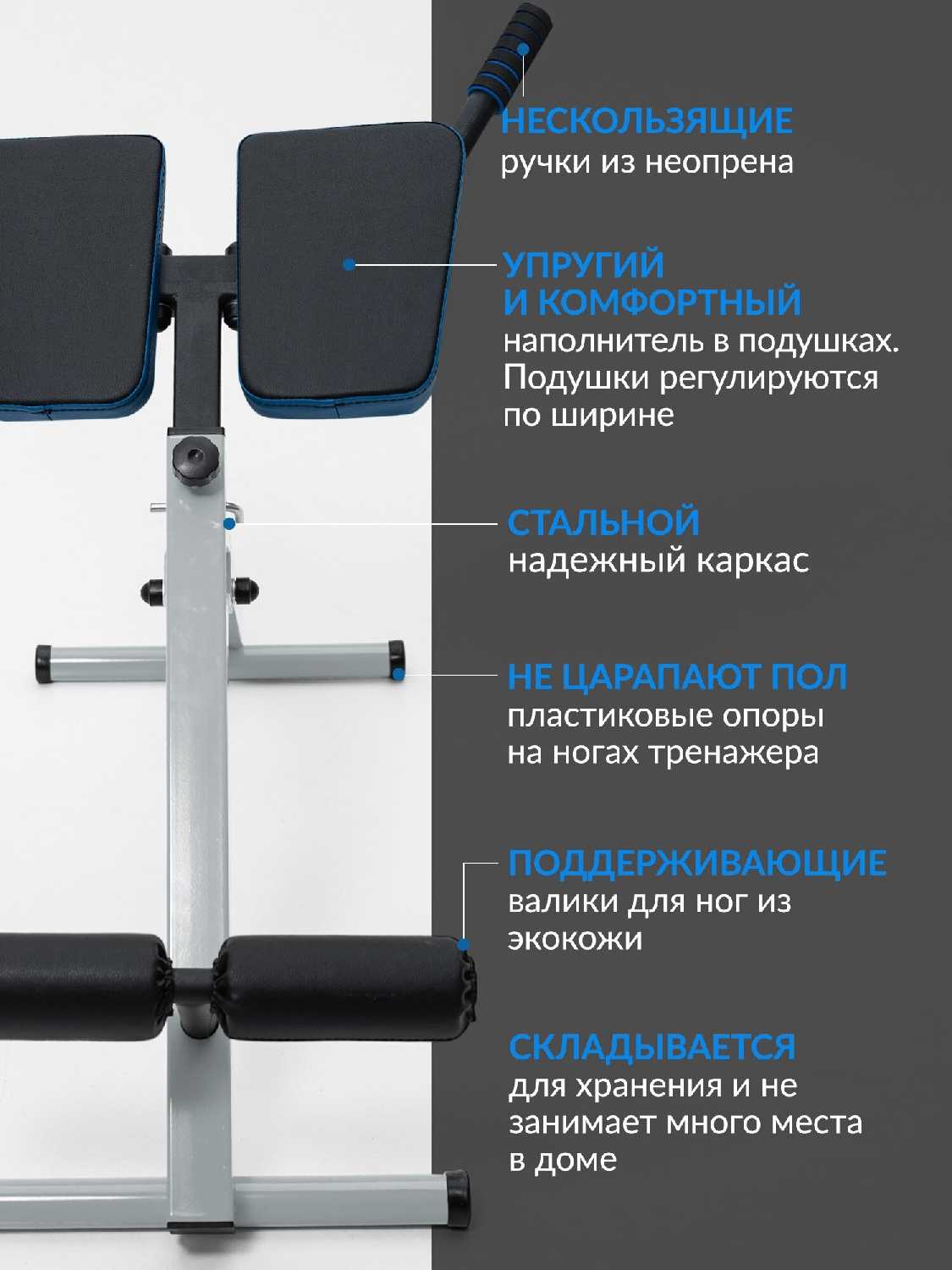 Особенности : | дополнительная нагрузка, регулировка под рост, рукоятки для хвата, складной |