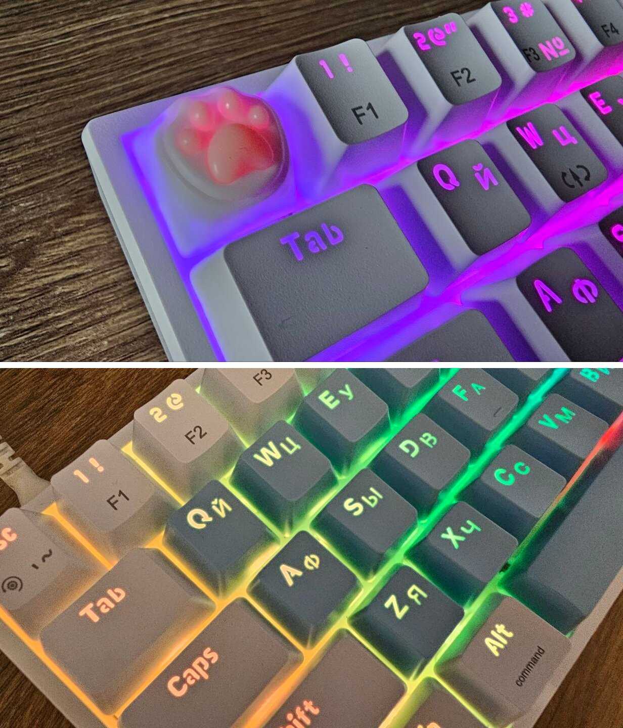 - + отличная механика за эти деньги, есть кейкап клавиши еsc в форме кошачьей лапки. Дочке понравилось)))