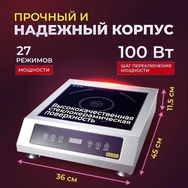 | Дополнительная информация : | шаг переключения мощности: 100 Вт, диапазон регулировки мощности: от 200 до 3500 Вт, допустимая распределенная нагрузка:100 кг, диаметр индукционной катушки: 235 мм, вес: 5 кг |