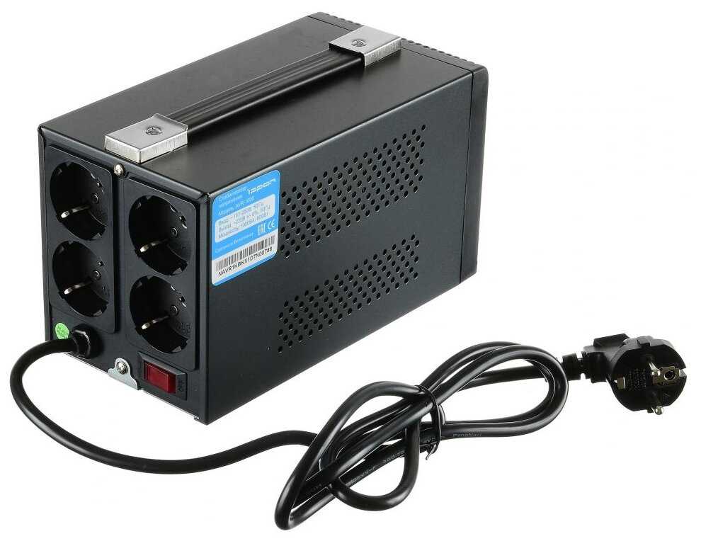 Стабилизатор полностью устроил, заявленную нагрузку держит. Корпус очень прочный, достаточно компактный, для транспортировки предусмотрена удобная ручка, никаких нареканий не имею, плюс цена на него более чем адекватная