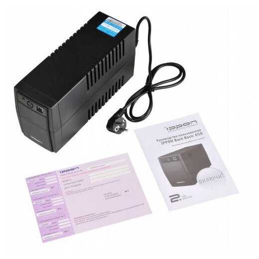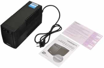 В комплекте кроме гарант.талона ничего не было. Инструкцию, ради интереса, посмотрел на сайте. Согласно ей зарядил перед использованием 6 часов.Там же скачал программу. Начал пользоваться. При включении пищит. При стабилизации напряжения щелкает. При отключении электроэнергии - выполняет свои функции. У меня подключен ПК с БП на 650 Вт, монитор 23". Никаких проблем пока не обнаружил. В общем и целом хороший ИБП