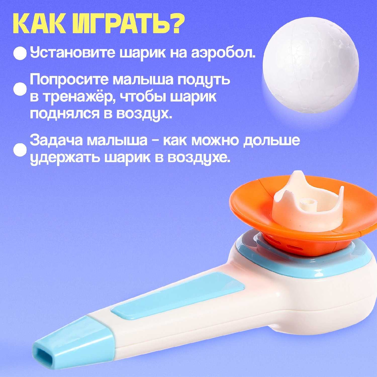 - Шарик поднимается при правильном дуновении, что мотивирует ребенка тренировать силу выдоха, улучшая контроль дыхания.