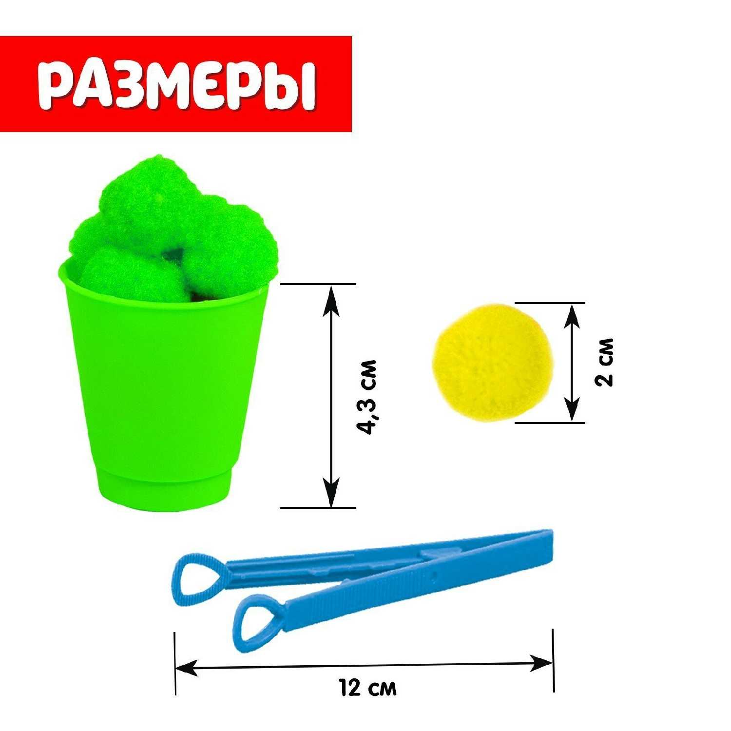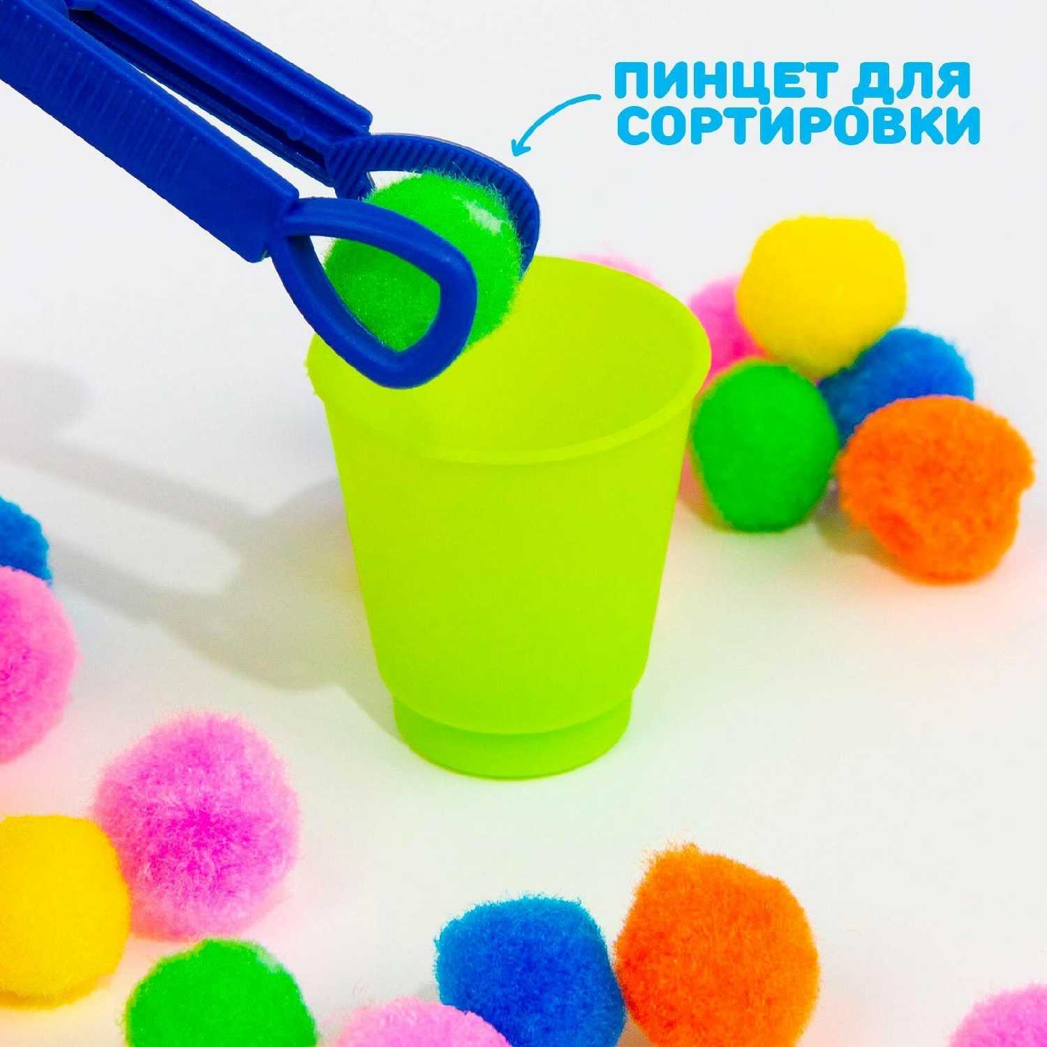 - Пинцет оптимального размера позволяет детям от 1.5 лет уверенно захватывать помпоны, тренируя координацию движений.