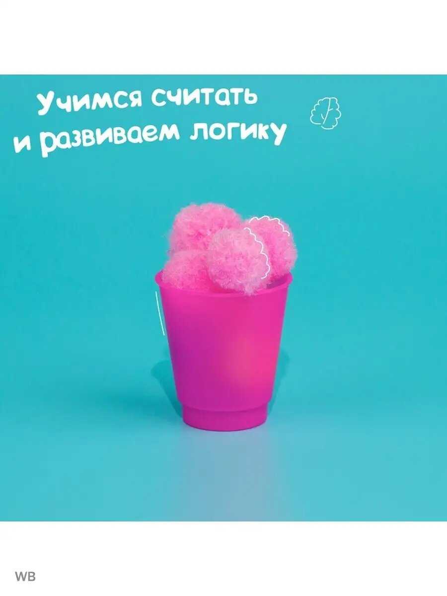Яркие оттенки помпонов (красный, синий, оранжевый) четко различимы, что помогает детям 1,5–2 лет быстро запоминать и сортировать их. Проблемы возникают с похожими цветами: например, желтый и зеленый стаканчики часто путают из-за схожести тонов. Для базового обучения основные цвета работают эффективно, но нестандартные оттенки (розовый, голубой) могут усложнять процесс. -