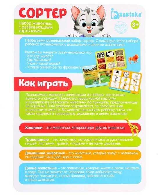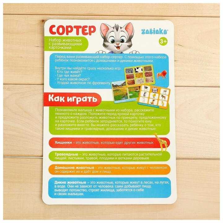 Комплектация : | 20 фигурок животных, 6 заданий |