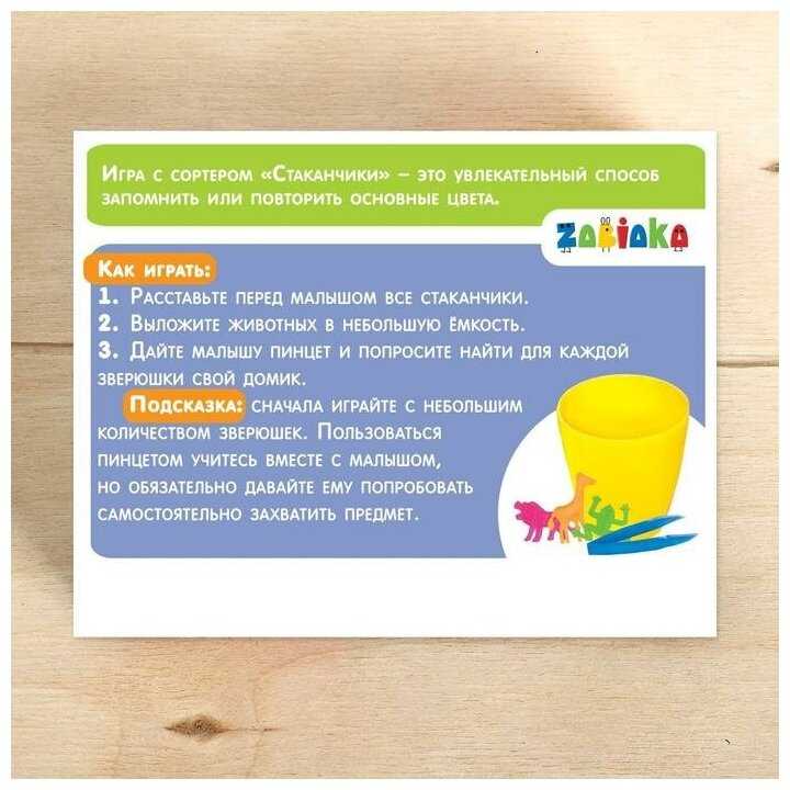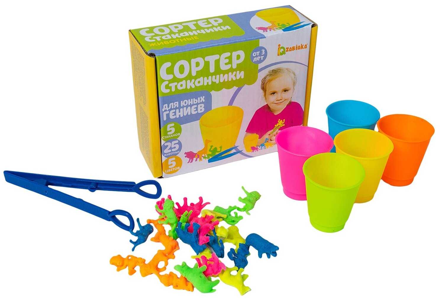 Можно придумать разные сценарии с разноцветными зверушками и стаканчиками.