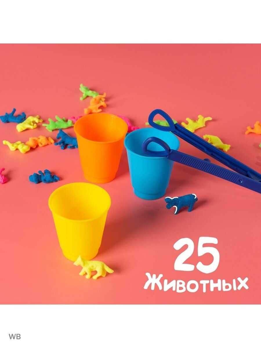 Комплектация : | 5 стаканчиков, 25 животных, пинцет |