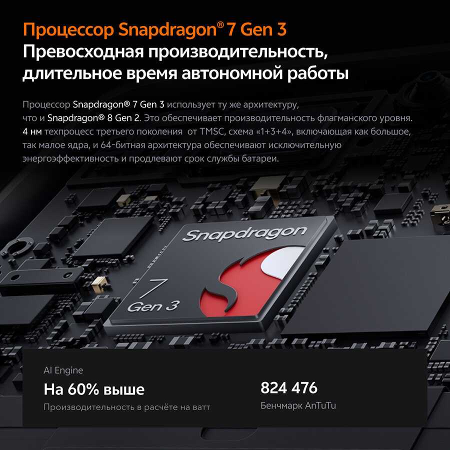 Смартфон демонстрирует отличную производительность благодаря процессору Snapdragon 8 Gen 3. В играх, включая требовательные вроде Genshin Impact, на максимальных настройках не наблюдается лагов или перегрева. Для многозадачности 16 ГБ оперативной памяти обеспечивают плавное переключение между приложениями без перезагрузки вкладок. -