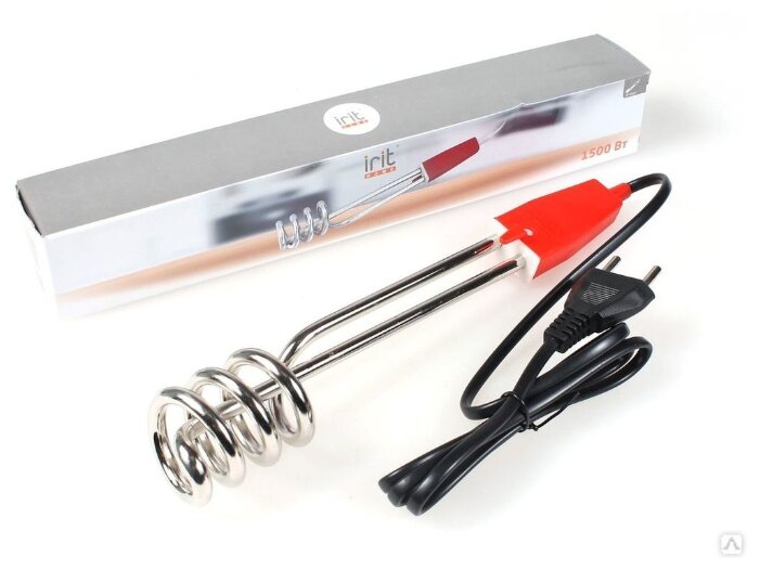 | Дополнительная информация : | Кипятильник имеет изогнутую форму с двумя металлическими спиралями, ручка кипятильника выполнена из красного пластика, надпись 'Inrit' на ручке кипятильника |