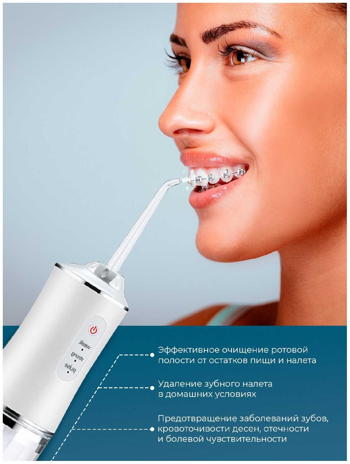 Evo Beauty Ирригатор для полости рта портативный с 4 сменными насадками для домашнего использования, уход за зубами и деснами