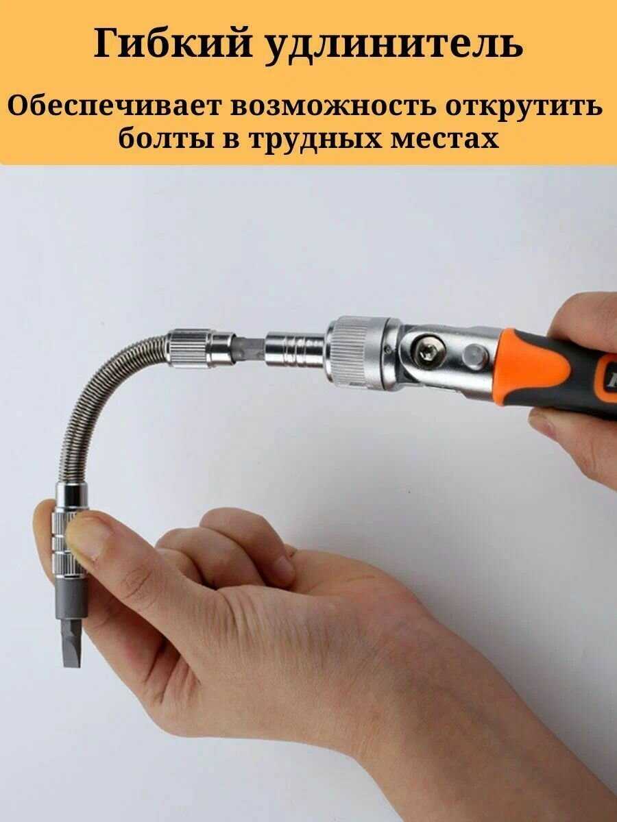 - - гибкий удлинитель деформировался при использовании с шуруповёртом, чуть повело пружину и трос внутри, советую использовать только с отвёрткой в "ручную"
