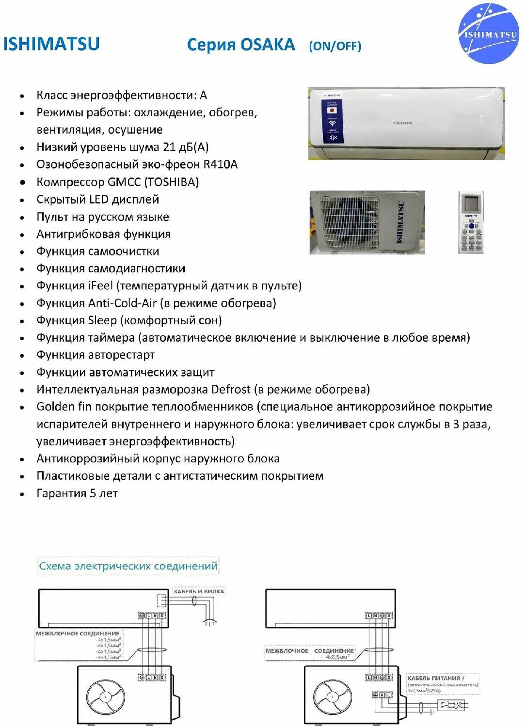 - Низкий уровень шума внутреннего и внешнего блоков: