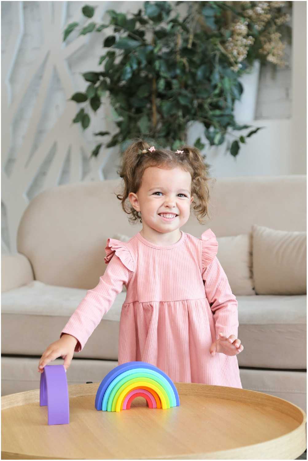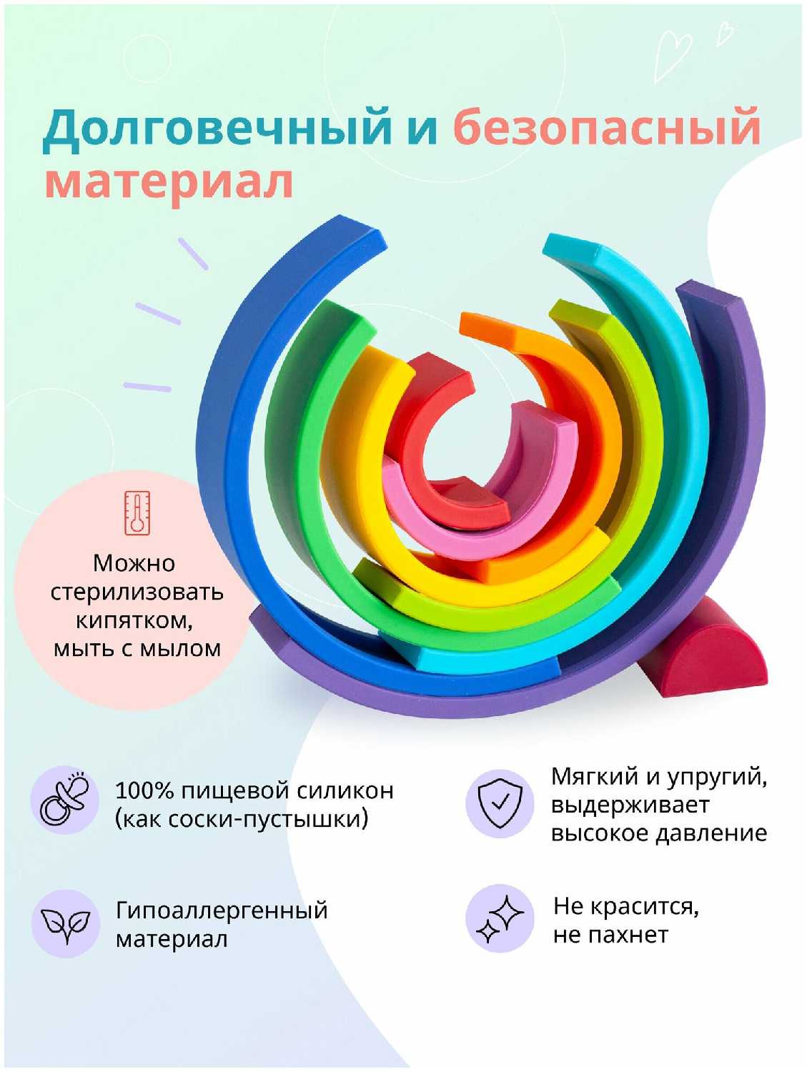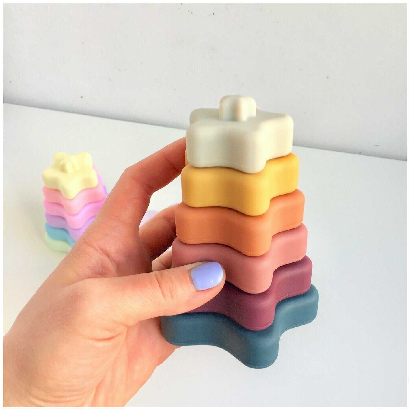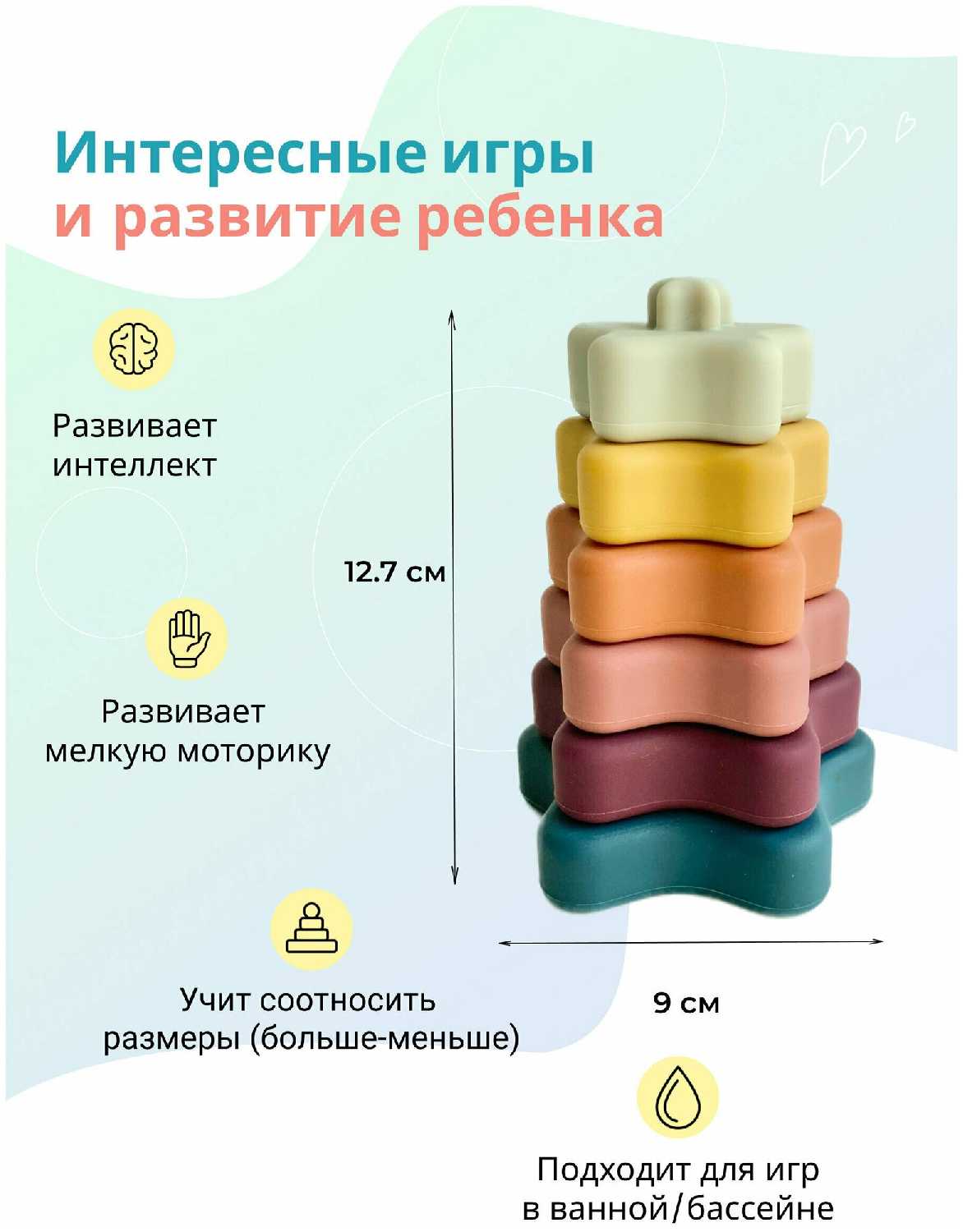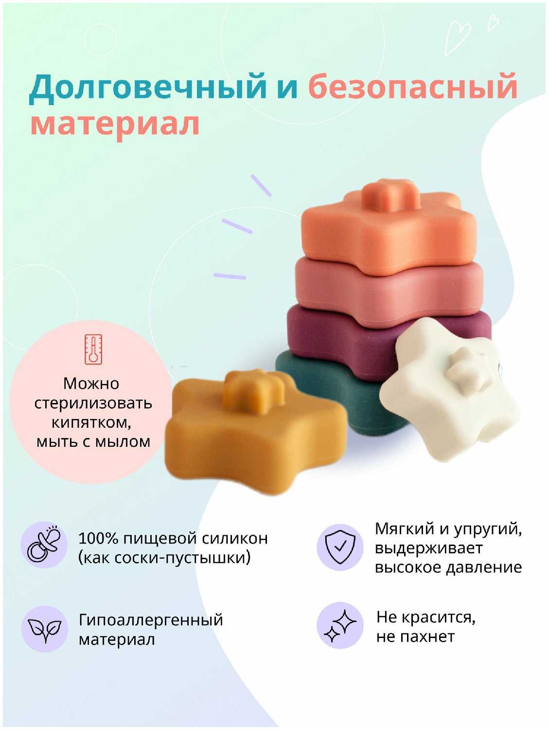 - + Мягкая, отличный грызунов пока ребенок маленький, как у меня. В дальнейшем классно использовать как пирамидку, а можно даже башню построить или сделать силуэты животных.